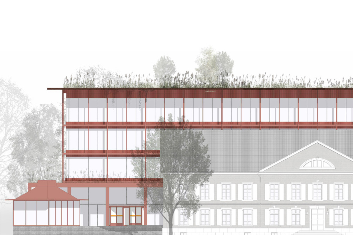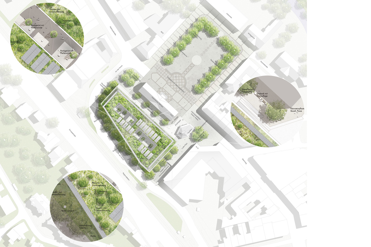 Das Freiraumkonzept verfolgt die qualitative Aufwertung des Stadtraums rund um das historische Rathaus sowie die Schaffung einer neuen, prägnanten Adressbildung für den Rathausneubau. Durch die gestalterische Verzahnung von Alt- und Neubau mit dem Kaiserplatz entsteht ein zusammenhängendes Ensemble mit hoher Aufenthaltsqualität, das den Anforderungen an Resilienz, Nachhaltigkeit und Stadtraumbezug entspricht.